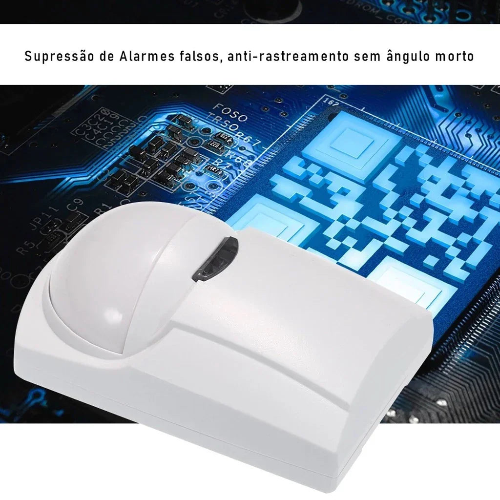 - Ajustes: Sensibilidade variável, ajuste de largura de pulso e calibração de altura para instalação entre 1,8m e 2,4m.